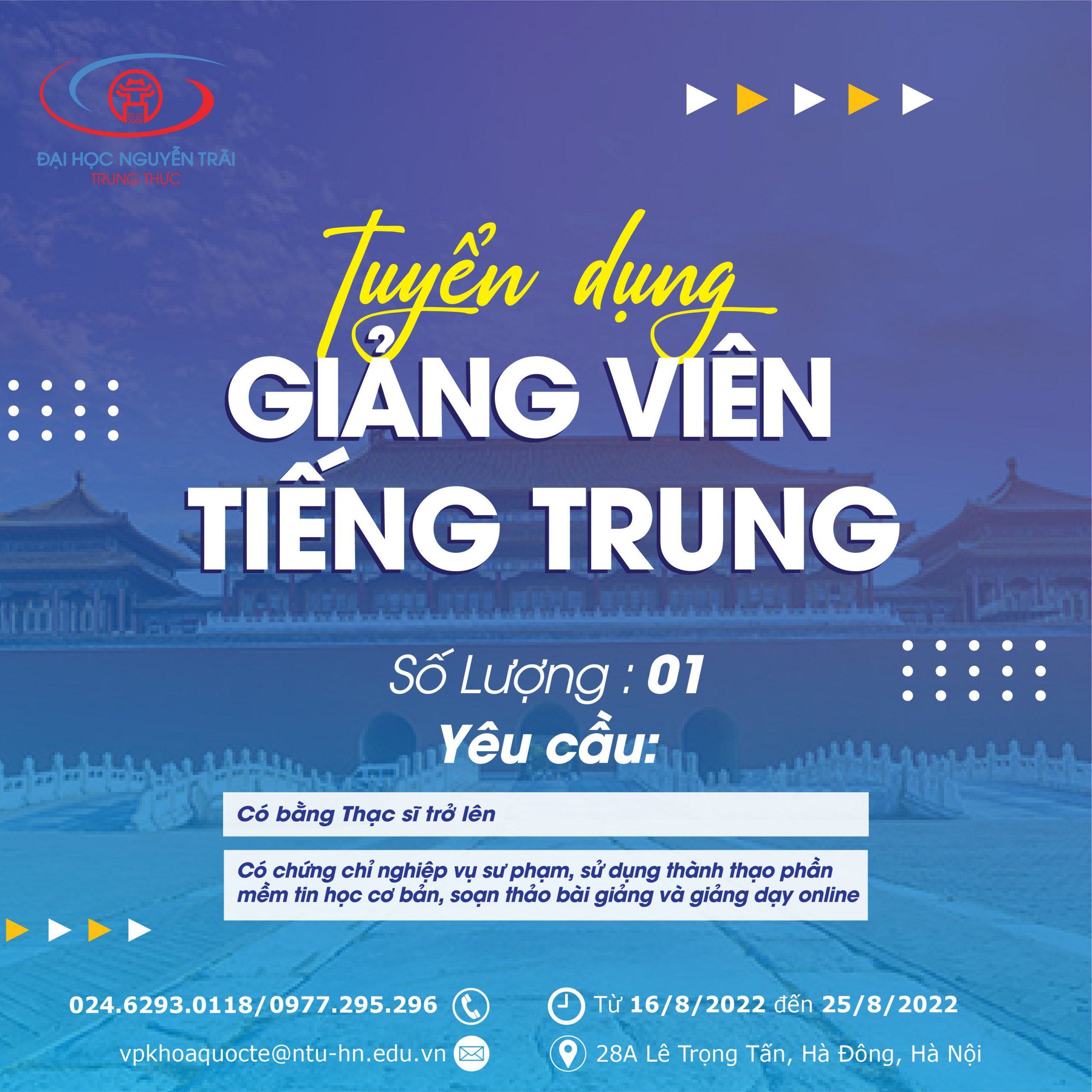 Tuyển dụng giảng viên cơ hữu Tiếng Trung